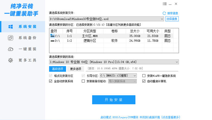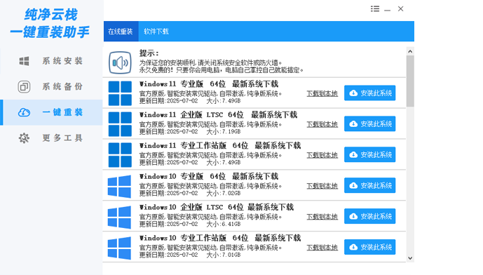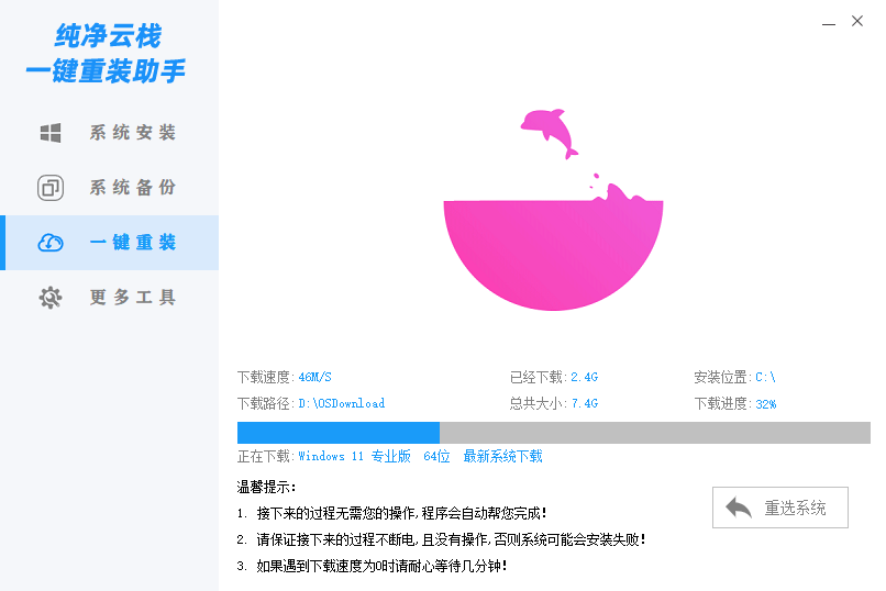 以上就是纯净云栈一键重装系统系统教程,有不懂的如何使用纯净云栈一键重装系统系统的用户,可以尝试多看几遍以上的使用教程操作看看,希望以上教程可以给大家带来更多的帮助。