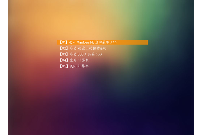 U盘插入电脑,重启电脑按快捷键选择U盘进行启动。进入后,键盘↑↓键选择第一个【01】进入 WindowsPE启动莱单>>>,然后回车。如下图所示