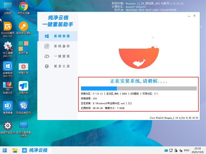 到了这一步时即可离开电脑,全程无需操作,程序会全自动完成重装步骤,等待全自动一直安装完成到出来电脑桌面为止。如下图所示